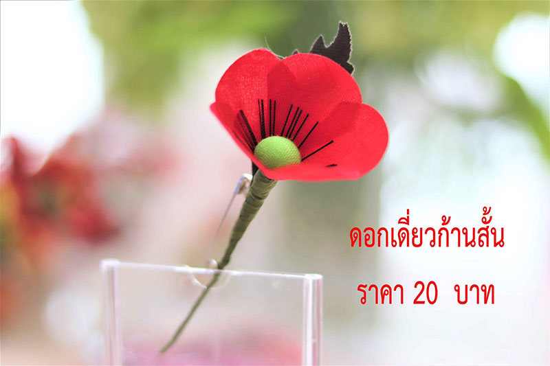 ดอกป๊อปปี้ดอกละ 20 บาท เป็นงานฝีมือของครอบครัวทหารผ่านศึก ทำให้พวกเขาได้รับค่าทำดอกไม้เป็นรายได้ประจำปี ซึ่งเป็นการได้รับความช่วยเหลือโดยตรงจากการทำดอกป๊อปปี้ นอกเหนือไปจากสวัสดิการที่ทางมูลนิธิฯ จัดให้เพื่อเป็นการช่วยเหลือให้ทุเลาจากความขาดแคลนที่เกิดจากความสูญเสียรายได้ของหัวหน้าครอบครัวและดอกป๊อปปี้เหล่านั้น ได้นำมาขายทุกปี ตั้งแต่ปี 2512 รายได้จากการขายดอกป๊อปปี้ และผลิตภัณฑ์อื่นของมูลนิธิฯ รวมทั้งการบริจาคของผู้มีจิตกุศล เป็นความช่วยเหลือของประชาชนโดยทั่วไป ที่รับรู้และเห็นใจในความเสียสละของทหารหาญ ที่ทำหน้าที่ปกป้องประเทศชาติแทนพวกเรา