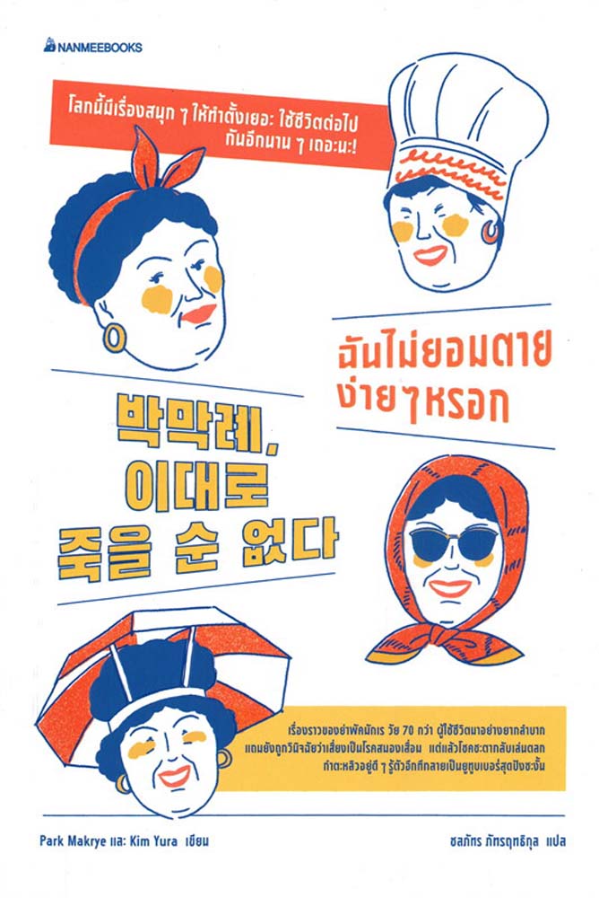 ‘ฉันไม่ยอมตายง่าย ๆ หรอก’ ผู้เขียน Park Makrye (พัค มักเร),Kim Yura (คิม ยูรา) ผู้แปลชลภัทร ภัทรฤทธิกุล เป็นเรื่องราวของย่าพัคมักเร วัย 71ปี ผู้ใช้ชีวิตมาอย่างยากลำบากแสนอาภัพมาตลอดชีวิต ตอนเด็ก ๆ ถูกห้ามเรียนหนังสือเพราะเป็นลูกสาว อายุ20แต่งงานกับชายไร้ความรับผิดชอบที่ปล่อยเธอเลี้ยงลูก3 คนเพียงลำพัง ถูกโกงเงินแทบหมดตัวถึง 2 ครั้ง ทำงานหนักจนร่างแทบพัง แถมพอแก่ตัวลงยังเสี่ยงเป็นโรคอัลไซเมอร์ หลานสาว “คิมยูรา” จึงลาออกจากงานประจำมาดูแลคุณย่า นับตั้งแต่นั้น ถือเป็นจุดพลิกผันของชีวิตพัคมักเร เริ่มขึ้นเมื่อ คิมยูราอัปโหลดวิดีโอท่องเที่ยวออสเตรเลียของย่าลงยูทูบจนมียอดเข้าชมทะลุล้าน และถือกำเนิดเป็นยูทูบเบอร์วัย 71 ปีผู้โด่งดังในที่สุด อาชีพใหม่นี้ทำให้ทั้งคู่เปิดประตูสู่ความเป็นไปได้มากมายนับไม่ถ้วน แม้กระทั่งโอกาสพบปะคนดังอย่างซีอีโอกูเกิล และเรียนรู้ว่าขอแค่มีความหวัง ชีวิตก็มีสิ่งที่น่าสนุกรออยู่เสมอ หนังสือเล่มนี้ราคา 295 บาท
