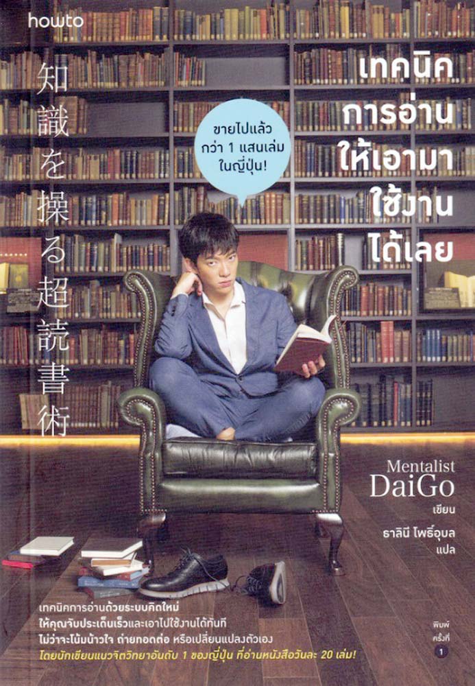 ‘เทคนิคการอ่านให้เอามาใช้งานได้เลย’ ผู้เขียนMentalist DaiGo นักเขียนแนวจิตวิทยาอันดับ 1 ของญี่ปุ่น แปลโดยธาลินี โพธิ์อุบล หนังสือได้รวบรวมแนะนำเทคนิคการอ่านหนังสือด้วยระบบคิดใหม่ ให้จับประเด็นเร็วและเอาไปใช้งานได้ทันที ไม่ว่าจะโน้มน้าวใจ ถ่ายทอดต่อ หรือเปลี่ยนแปลงตัวเอง ที่จะทำให้ผู้อ่านสามารถจดจ่อกับหนังสือที่อ่าน จดจำและนำความรู้ที่ได้ไปใช้พัฒนาตัวเองได้จริง เนื้อหาในเล่มจะเริ่มดำเนินเรื่องโดยการเน้นการปรับทัศนคติเกี่ยวกับการอ่าน การเตรียมตัวก่อนการอ่าน เช่น กำหนดเป้าหมายการอ่านให้ชัดเจนว่าทำไมถึงอยากอ่านหนังสือเล่มนี้ อยากเรียนรู้อะไรจากหนังสือเล่มนี้ หลังจากอ่านแล้วเจะเปลี่ยนแปลงตัวเองอย่างไร จากนั้นระหว่างอ่านละหลังอ่านก็จดโน้ตสาระสำคัญที่ได้จากการอ่านไว้ และสุดท้ายคือสร้างเอาท์พุตเล็ก ๆ เช่น พูดคุยกับคนอื่น หรือเขียนบล็อก เป็นต้น หนังสือราคา หนังสือ 225.00 บาท