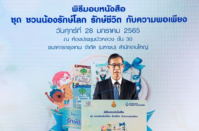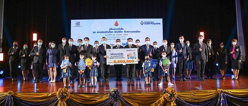 ธนาคารกรุงเทพ จำกัด (มหาชน) ร่วมกับ บริษัท สำนักพิมพ์ประพันธ์สาส์น จำกัด จัดกิจกรรม “ชวนน้องรักษ์โลกรักษ์ชีวิต กับความพอเพียง” ผนวกหนังสือเสริมประสบการณ์ชีวิต โดยมอบหนังสือให้แก่ห้องสมุดที่ขาดแคลนหนังสือในโรงเรียนสังกัดกระทรวงศึกษาธิการทั่วประเทศ 400 แห่ง มูลค่า 8,000,000 บาท ปีนี้จัดขึ้นเป็นปีที่ 13 ณ ห้องประชุมชั้น 30 ธนาคารกรุงเทพ สำนักงานใหญ่ สีลม เมื่อวันที่ 28 มกราคม 2565