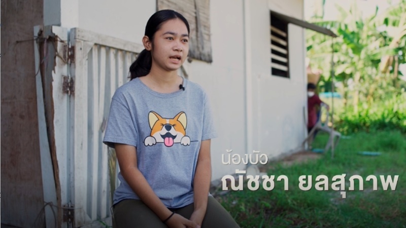 “หนูอยู่กับคุณยาย คุณยายเป็นคนเลี้ยงหนูมาตั้งแต่เด็ก ๆ เลย” น้องบัวเล่า “หนูเห็นคุณยายเป็นหนี้มาตั้งแต่เด็ก บางทีต้องคอยหลบเพราะว่าไม่มีเงินไปจ่าย หนูก็อยากให้คุณยายสบาย อยากเลี้ยงคุณยาย และก็อยากให้คุณยายอยู่กับหนูนาน ๆ …หนูเลยมีความฝันตั้งแต่เด็กว่าจะตั้งใจเรียนให้จบปริญญา เพราะตั้งใจว่าอยากให้ครอบครัวพัฒนามากขึ้น แล้วก็มีความเป็นอยู่ที่ดีขึ้น”