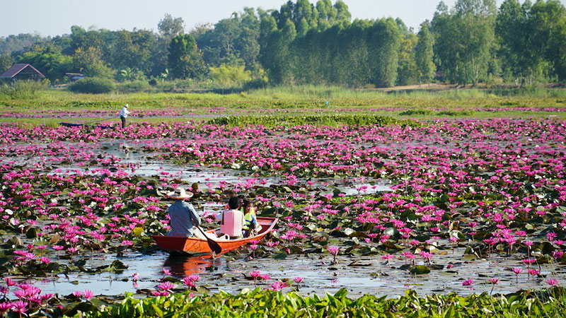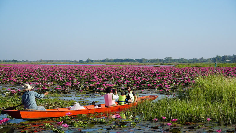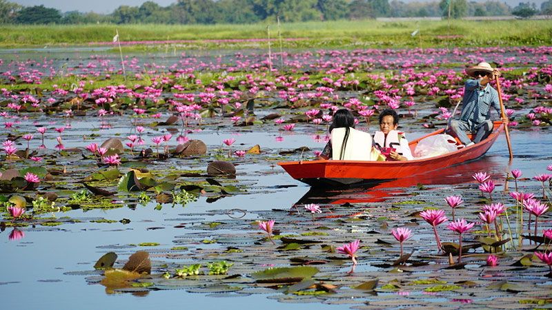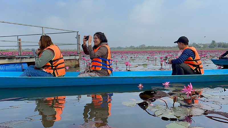 จากสภาพอากาศในจังหวัดหนองคาย ที่หนาวเย็นต่อเนื่องติดต่อกันหลายวัน ได้ส่งผลดีต่อการท่องเที่ยวของจังหวัดหนองคาย ที่ได้สัมผัสกับธรรมชาติที่สวยงาม ลง ล่องเรือชมดอกบัวแดง ซึ่งกำลังบางสะพรั่งสวยงามในวังบัวแดง พื้นที่กว่า 2,600 ไร่ ซึ่งมีบัวออกดอกหนาแน่น ชาวบ้านได้นำเรือออกมาให้บริการ เพื่อให้นักท่องเที่ยวให้ได้สัมผัสดอกบัวแดงอย่างใกล้ชิด และทำโป๊ะไว้กลางน้ำให้นักท่องเที่ยวได้ขึ้นไปถ่ายรูปเก็บความสวยงามไว้เป็นที่ระลึก