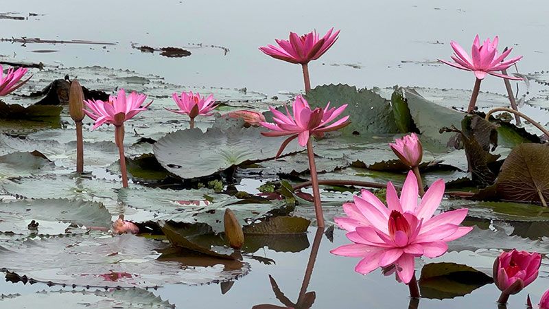 หนองคายอากาศหนาวเย็นต่อเนื่อง ส่งผลดีต่อดอกบัวแดงที่วังบัวแดง พื้นที่กว่า 2 พันไร่ ผุดดอกพ้นน้ำหนาแน่นและบานสะพรั่งรับอากาศหนาวเย็นยามเช้า ส่งผลให้บรรยากาศท่องเที่ยวช่วงนี้คึกคัก นักท่องเที่ยว ต่อแถวล่องเรือชมดอกบัวแดง ในขณะที่อุณหภูมิทั่วที่จังหวัดหนองคาย ยังคงหนาวเย็นต่อเนื่อง อุณหภูมิต่ำสุดช่วงเช้าอยู่ที่ 18-20 องศาเซลเซียส