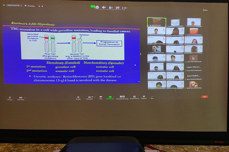 องค์ประธานสถาบันวิจัยจุฬาภรณ์ ทรงบรรยายพิเศษผ่านสื่ออิเล็กทรอนิกส์ (ออนไลน์) เรื่อง “การเกิดโรคมะเร็ง Oncogenesis” พระราชทานแก่ นักศึกษาแพทย์ชั้นปีที่ 2 และนักศึกษาทันตแพทย์ชั้นปีที่ 1-2 ของมหาวิทยาลัยเทคโนโลยีสุรนารี ณ ตำหนักทิพย์พิมาน จังหวัดนครราชสีมา