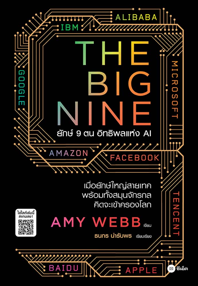 หนังสือ “The Big Nine ยักษ์ 9 ตน อิทธิพลแห่ง AI” ปัญญาประดิษฐ์ (Artificial Intelligence) ผู้เขียน Amy Webb (เวบบ์ เอมี) ผู้แปล ธนกร นำรับพร หนังสือเล่มนี้ได้ถ่ายทอดข้อมูลเชิงลึก และให้มุมมองด้านการเข้ามาของ AI ในสังคมโลกไว้อย่างน่าสนใจ ผ่านการทำงานและวิจัยพัฒนาของ 9 บริษัทยักษ์ใหญ่ในวงการได้แก่ กูเกิล แอมะซอน แอปเปิล ไมโครซอฟท์ และไอบีเอ็มจากฝั่งสหรัฐฯ ไบ่ตู้ อาลีบาบา เทนเซ็นต์จากฝั่งจีน 9 บริษัทนี้ ดูเผินๆ แล้วเหมือนเป็นบริษัทด้านเทคโนโลยีใหญ่ๆ ที่ต่างพัฒนาสินค้าและบริการของตัวเองแข่งกันไป แต่ ผู้เขียนมองว่าบริษัทเหล่านี้ มีลักษณะแนวคิดหรือปรัชญาบางอย่างที่คล้ายกัน โดยเธอวิเคราะห์แบ่งประเภทแนวคิดของการใช้ AI เป็นสองฝั่งใหญ่ๆ ได้แก่ ฝั่งสหรัฐอเมริกา ซึ่งเน้นการสร้างบริการและตอบโจทย์ทางการตลาด ในขณะที่ฝั่งประเทศจีนที่เธอมองว่า รัฐบาลภายในการนำของ สี จิ้นผิง นั้น กำลังเดินหน้าสร้าง Infrastucture ด้าน AI ระดับโลก เพื่อพัฒนาการประยุกต์ใช้ AI ให้รอบด้านในชีวิตประจำวันของมนุษย์ และนำเสนอว่าโดยรวมแล้วจะได้เห็นว่า AI จะให้อะไรให้กับสังคมในโลกอนาคตอันใกล้นี้ได้บ้าง ราคาเล่มละ295 บาท
