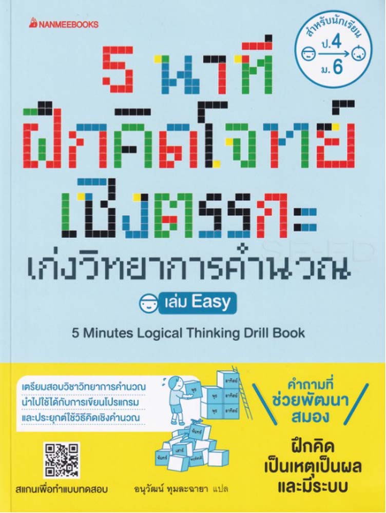 ผู้แปล อนุวัฒน์ ทุมละฉายา เป็นหนังสือที่เตรียมสอบวิชาการคำนวณ นำไปใช้ได้กับการเขียนโปรแกรมและประยุกต์ใช้วิธีคิดเชิงคำนวณ คำถามที่ช่วยพัฒนาสมอง ฝึกคิดเป็นเหตุเป็นผลและมีระบบ มาเตรียมตัวก่อนสอบวิชาวิทยาการคำนวณด้วยโจทย์เชิงตรรกะที่ใช้ในการทดสอบ Global Math Challenge ที่มีนักเรียนจากทั่วโลกมาประลองสมองกัน พบกับกระบวนการที่นำไปสู่การแก้โจทย์ปัญหา “5 เส้นทางแห่ง ความคิด” ส่วนภาคเฉลยก็จะสอนว่าการหาคำตอบ เพื่อพัฒนาความคิดดำเนินแบบ 5 เส้นทางแห่งความคิดควรมี step อย่างไร รูปแบบการคิด ต่าง ๆ ที่แฝงอยู่ใน 5 เส้นทางนั้นสำคัญกับการใช้ชีวิต เมื่อเติบโตเป็นผู้ใหญ่หรือแม้กระทั่ง การทำงานในยุคสมัยใหม่นี้ ในโลกที่คอมพิวเตอร์และปัญญาประดิษฐ์เข้ามามีบทบาทสำคัญ เหนือการดำเนินชีวิต จึงจำเป็นมากที่จะต้องมีศักยภาพในการคิดวิเคราะห์เชิงตรรกะ หนังสือราคาเล่มละ 195 บาท