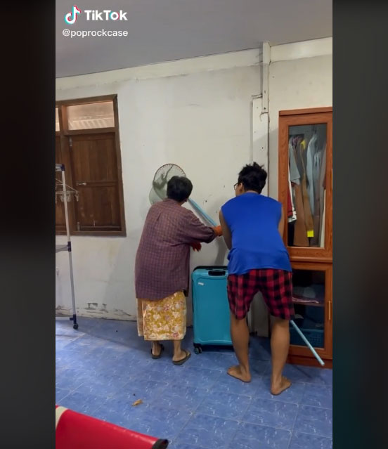 แม่ก็คือแม่… เมื่อไหร่ที่ลูกเดือดร้อนหรือมีปัญหาก็ต้องถึงมือ “แม่” เช่นเดียวกับคลิปนี้ เมื่อติ๊กต็อก “poprockcase” โพสต์คลิปขณะที่ตุ๊กแกตัวยักษ์อยู่ในบ้าน แม่ลูกกำลังช่วยกันใช้ไม้ตาข่ายจับ แต่จู่ๆ ตุ๊กแกตัวดังกล่าวดิ้นจนหลุดออกมานอกตาข่าย ทำเอาคุณลูกชายกรี๊ดแตก… วิ่งหนีกระเจิง ในขณะที่แม่ยังคงพยายามตามจับเจ้าตุ๊กแกยังอยู่ จนใช้มือจับตุ๊กแกเป็นๆ ได้ในที่สุด