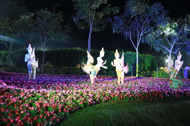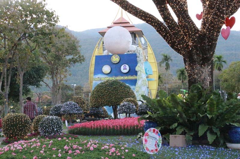 ภายในงานได้นำไม้ดอกไม้ประดับ มาประดับตกแต่งอย่างสวยงาม สะท้อนถึงอัตลักษณ์ความสวยงามและรุ่งเรืองของจังหวัดเชียงใหม่อย่างยิ่งใหญ่ บนพื้นที่กว่า 27 ไร่ มีการประดับไฟ จัดสวนดอกไม้เมืองหนาว อาทิ ดอกทิวลิป ดอกลิลลี่ ดอกไฮเดรนเยีย และมีการจัดแสดงแสง สี เสียง ยามค่ำคืน โดยแบ่งออกเป็น 7 โซน ประกอบด้วย โซนที่ 1 Magic of flower light : อัศจรรย์ของดอกไม้นานาพันธุ์และเปลี่ยนผันเป็นแสงสี เหมือนสายน้ำสะท้อนแสงจันทร์แสงดาวในยามค่ำคืน โซนที่ 2 Best of Chiang Mai : แสดงอัตลักษณ์ที่เป็นเอกลักษณ์ของเชียงใหม่ มาอย่างช้านาน ด้วยประติมากรรมรูปร่มบ่อสร้าง ที่สะท้อนแสงได้ทั้งกลางวันและกลางคืน โซนที่ 3 Golden of Lanna : ความเรืองรองของโคมไฟสีทอง ส่องประกายสว่างไสวเต็มท้องฟ้า ด้วยการจำลองการปล่อยโคมลอย เสมือนได้อยู่ท่ามกลางโคมลอยนับพันดวง โซนที่ 4 Sat-tha ศรัทธา : ความเชื่อ ความศรัทธา ที่มีสืบทอดมาอย่างช้านาน แสดงถึงแสงแห่งศรัทธา โดยมีทุ่งดอกบัวเรืองแสงประดับด้านหน้าพระพิฆเนศและทุ่งทิวลิปเรืองแสง โซนที่ 5 Wonder Forest & amp; Light of Glory : มหัศจรรย์ของแสงแห่งป่าลึก เป็นอุโมงค์ที่ประดับด้วยไม้ใบ เขียวชอุ่ม ตัดกับสีสดใสของไม้ดอก และในยามค่ำคืน ความมหัศจรรย์แห่งแสงจะปรากฎเป็นภาพดอกไม้และผีเสื้อสะท้อนเป็นสีสันสวยงาม โซนที่ 6 Tropical Rain Forest : ความชุ่มชื้นดั่งฝนโปรยปราย ของสวนกล้วยไม้ที่เบ่งบานนานาพันธุ์ และโซนที่ 7 Evolution of Chiang Mai : แสงแห่งสายน้ำ หลอมรวมเป็นจุดกำเนิดแห่งชีวิต สร้างให้มีพลังแห่งความหวัง และสร้างความฝันที่ยิ่งใหญ่ต่อไป นอกจากนี้ ยังมีการจัดการแสดงม่านน้ำและน้ำพุดนตรีความยาวกว่า 200 เมตร ด้วยเทคนิคแสง สีเสียง โดยเปิดให้ชมคืนละ 3 รอบ เวลา 18.00 น. 19.00 น. และ 20.30 น.