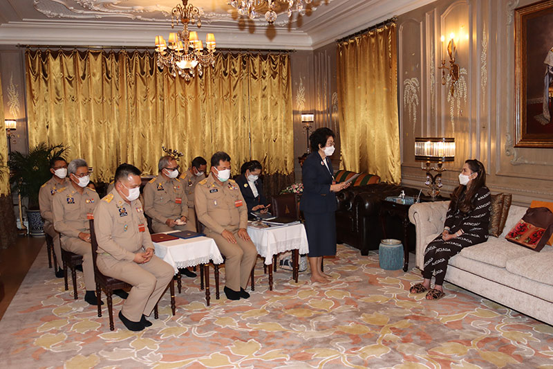 ศาสตราจารย์ ดร.สมเด็จพระเจ้าน้องนางเธอ เจ้าฟ้าจุฬาภรณวลัยลักษณ์ อัครราชกุมารี กรมพระศรีสวางควัฒน วรขัตติยราชนารี พระราชทานพระนโยบาย แนวทางการปฏิบัติงาน โครงการบูรณะพระราชวังสนามจันทร์ จังหวัดนครปฐม แก่ปลัดกระทรวงมหาดไทย และอธิบดีกรมโยธาธิการและผังเมือง ณ ตำหนักทิพย์พิมาน อำเภอปากช่อง จังหวัดนครราชสีมา