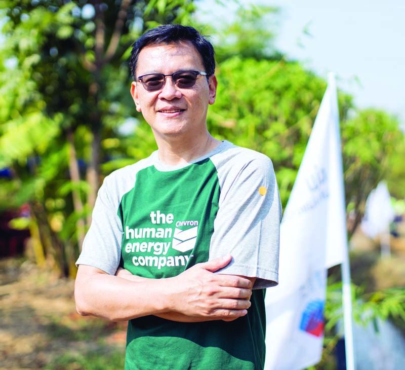 อาทิตย์ กริชพิพรรธ ผู้จัดการใหญ่ฝ่ายสนับสนุนธุรกิจ บริษัท เชฟรอนประเทศไทยสำรวจและผลิต จำกัด กล่าวว่า“โครงการตามรอยพ่อฯ ปี 9 ดำเนินงานภายใต้แนวคิด “9 ปี แห่งพลังสามัคคี ฟันฝ่าทุกวิกฤต สู่ทางรอดที่ยั่งยืน” เลือกพื้นที่ตัวอย่างความสำเร็จของไพโรจน์วิภาสวัสดิ์ ซึ่งเป็นเภสัชกรที่ศรัทธาในศาสตร์พระราชา ได้ศึกษาและลงมือปฏิบัติอย่างจริงจัง สร้างพื้นที่จากที่นาว่างเปล่ามาทำเป็นโคก หนอง นา ปลูกไม้ป่าให้ความร่มรื่นและกำลังปลูกพืชอาหารและสมุนไพรเพิ่ม คุณไพโรจน์ได้ทำให้เห็นเป็นต้นแบบว่าโคก หนอง นา ทำได้จริง หยุดท่วม หยุดแล้งได้จริง ขณะที่พื้นที่รอบข้างยังคงประสบกับภัยแล้งและน้ำท่วม ซึ่งในภายภาคหน้าพื้นที่แห่งนี้ก็จะเป็นแหล่งอาหารปลอดภัยและเป็นพื้นที่ปลอดภัยจากวิกฤตต่างๆ ได้อย่างสมบูรณ์แบบ มีผู้เข้าร่วมกิจกรรม 200 คน แบ่งเป็นเครือข่ายเอามื้อจากจังหวัดต่างๆ 140 คน ผู้สมัครผ่านทางเฟซบุ๊คโครงการ 30 คน ตลอดจนพนักงานเชฟรอนและครอบครัวอีก 30 คนมาร่วมเรียนรู้ผ่านการทำกิจกรรมต่างๆ เช่น ขุดปรับคลองไส้ไก่รอบแปลงนาและรอบหนองน้ำ ทำแปลงปลูกผักอินทรีย์ ทำนาอินทรีย์ ปลูกพืชผักสวนครัวและสมุนไพร ห่มฟางใส่ปุ๋ยแห้งปุ๋ยน้ำ เพาะผักเพาะต้นไม้ และทำน้ำยาอเนกประสงค์ เป็นต้น”