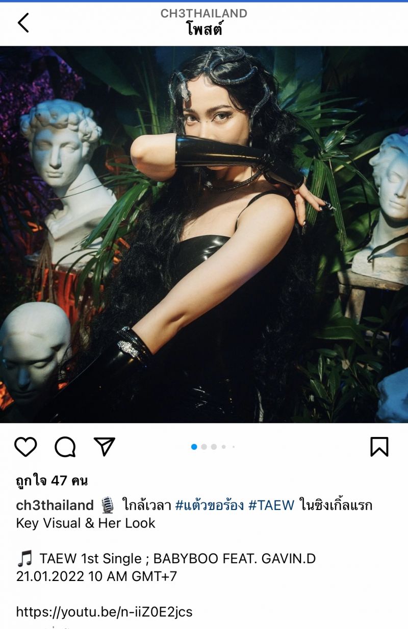 ติดตามผลงานเพลงและMV เต็มรูปแบบ “TAEW” “BABYBOO”ตั้งแต่เวลา 10.00 น.วันศุกร์ที่ 21 มกราคม 2565 ทาง Official MV “BABYBOO” ช่องทาง YouTube, Ch3ThailandMusic, 3Plus ApplicationและMusic Streaming Platformทุกช่องทางพร้อมทั้งการปรากฎตัวให้สัมภาษณ์ครั้งแรกในรายการ“ครอบครัวบันเทิงออนไลน์”“สีสันบันเทิง”“ข่าวสามสี” และการสัมภาษณ์สดทางIG ch3thailand และช่องทางออนไลน์อีกหลายช่องทางในวันศุกร์ที่ 21 มกราคม 2565 เช่นกัน งานนี้ฟาด!! แน่ #TAEW