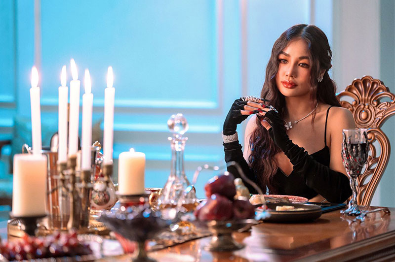 “ตอนแรกจะมีแค่ 4 ชุด แต่เพิ่มมาจากไหนก็ไม่รู้ (หัวเราะ) ก็ได้พี่อัน-Unkuniya สไตลิสต์ช่วยออกแบบตัดเย็บ ส่วนแตรเองก็ช่วยคิดคอนเซ็ปต์เพราะอยากให้แตกต่างจากเพลงที่ผ่านๆ มา และก็ให้เข้ากับสตอรี่บอร์ดเอ็มวีเป็นราชินีแวมไพร์ มีเล็บยาวๆ ดูดุๆ ชุดทั้งหมดก็คือชุดอยู่บ้าน สวยๆ (หัวเราะ) แซ่บทุกชุด อย่างชุดสีแดงคือชุดนอนไม่ได้นอนซีทรูทั้งตัว และชุดคริสตัลทั้งชุดก็ซีทรูเหมือนกันแต่แตรใส่บราสีเนื้อข้างในให้ดูเหมือนไม่มีอะไรแต่ก็จริงๆ ป้องกันอยู่ และก็มีชุดสีดำที่ร้อยสร้อยกระดูกโปร่งๆ ช่วงเอวเก๋ๆ ค่ะ”