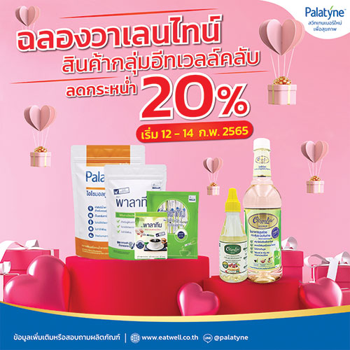 บจก.อีทเวลล์ ชวนใช้ “พาลาทีน”สวีทเทนเนอร์เพื่อคนรักสุขภาพ สำหรับควบคุมน้ำตาล และน้ำหนัก, ดูดซึมได้หมดในลำไส้ ฯลฯโรงพยาบาลชั้นนำเลือกใช้ ปั่นผสมอาหารผู้ป่วยทางสายยาง โปรฯพิเศษลด 20%ถึง 14 ก.พ. โทร.086-3695555