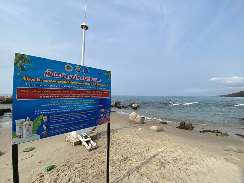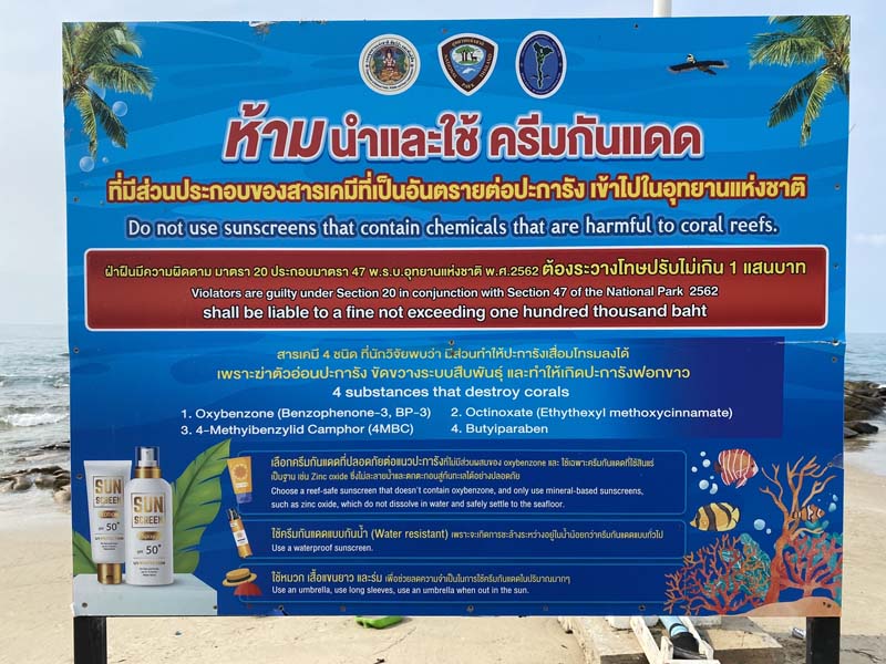 นายธวัช เจนการ หัวหน้าอุทยานแห่งชาติเขาแหลมหญ้า-หมู่เกาะเสม็ด จังหวัดระยอง กล่าวว่า ป้ายประชาสัมพันธ์ดังกล่าว ทางอุทยานฯ ได้ตั้งปักป้ายมาตั้งแต่เดือนตุลาคม 2564เพราะเป็นมาตรการและระเบียบเฝ้าระวังของกรมอุทยานฯ เพื่อต้องการประชาสัมพันธ์นักท่องเที่ยวและกรุ๊ปทัวร์ที่มาเที่ยวทะเลได้รับทราบ เนื่องจากครีมกันแดดมีส่วนประกอบของสารเคมีที่เป็นอันตรายต่อปะการัง ดังนั้นเพื่อเป็นการป้องกันผลกระทบต่อปะการังและสิ่งแวดล้อมในท้องทะเล ทางอุทยานฯ จึงได้ติดตั้งประชาสัมพันธ์ขอความร่วมมือกับกลุ่มนักท่องเที่ยวทุกคนที่มีครีมกันแดดที่มีส่วนประกอบสารเคมีที่เป็นอันตรายต่อปะการังได้ปฏิบัติเคร่งครัด เพื่อร่วมกันรักษาสิ่งแวดล้อมในทะเล