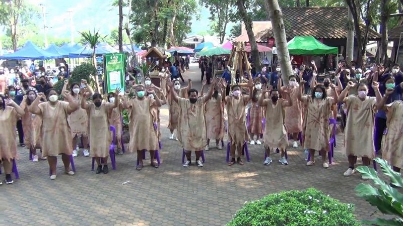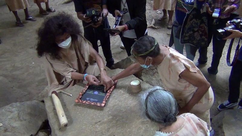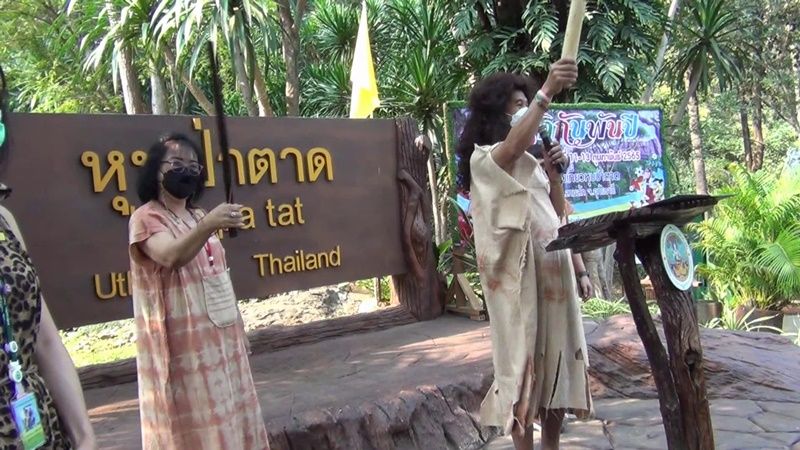 อบต.ทุ่งนางาม อำเภอลานสัก จังหวัดอุทัยธานี ย้อนยุคดึกดำบรรพ์ จัดกิจกรรมมนุษย์หินจดทะเบียนสมรสในหุบป่าตาดรักกันพันปี ในวันแห่งความรักวันวาเลนไทน์ พร้อมมอบของที่รำลึกครกพร้อมสาก