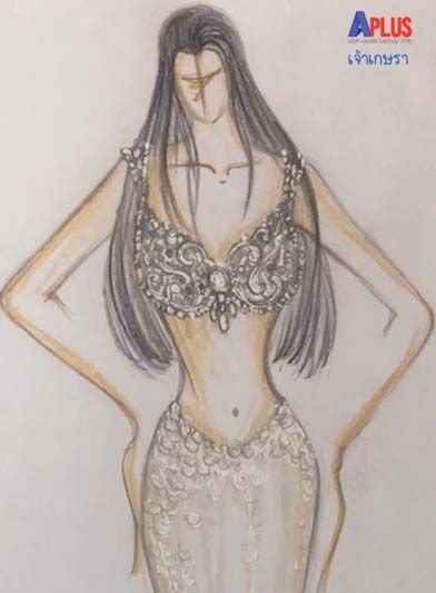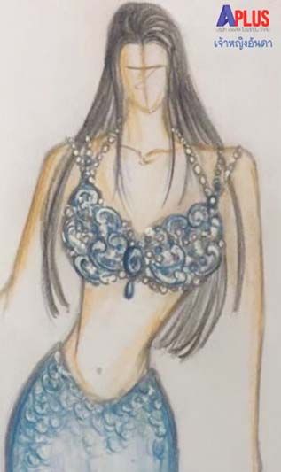 เริ่มที่ชุดเจ้าหญิงเงือกอันดา ที่แสดงโดยนางเอก “ยีน-เกวลิน ศรีวรรณา” ชุดเงือกเจ้าหญิงอันดา มาในชุดสีฟ้า