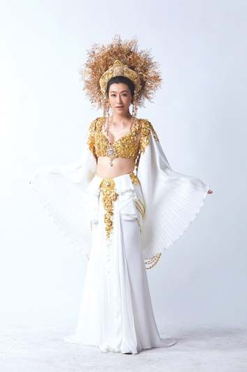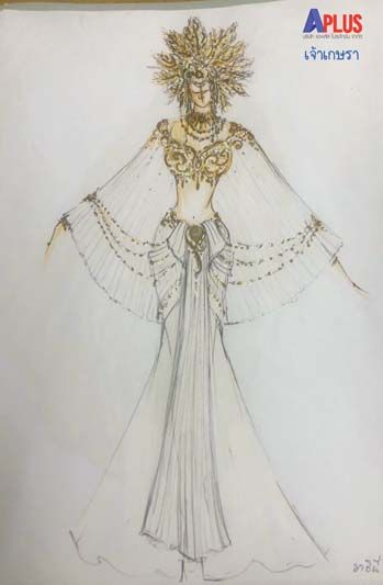 ต่อด้วยชุดราชินีเงือกอย่าง “ต่าย-ชัชฎาภรณ์ ธนันทา” ราชินีเงือกมาในชุดสีขาวทอง สื่อถึงนิสัยอันอ่อนโยน จิตใจดีรักในความยุติธรรมชอบ แถมเป็นราชินีเงือกในอุดมคติตามบทบาทที่เกิดขึ้นในเรื่อง ถึงแม้จะเป็นสีขาวที่บริสุทธิ์ก็ยังมีประดับสีทองอร่ามตาด้วยมงกุฎ เครื่องประดับสีทองบ่งบอกถึงความเป็นใหญ่ มั่งคั่ง ภูมิฐาน ทำให้รอบข้างสว่างสดใส ด้วยพลังงานที่ดี เหมาะที่จะเป็นราชินีที่สุด