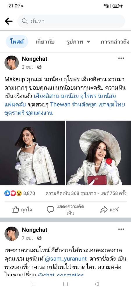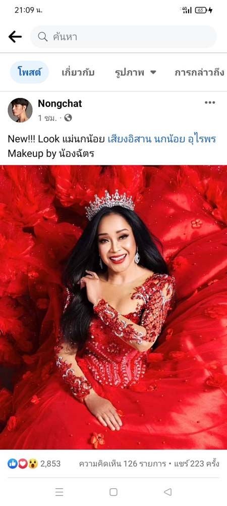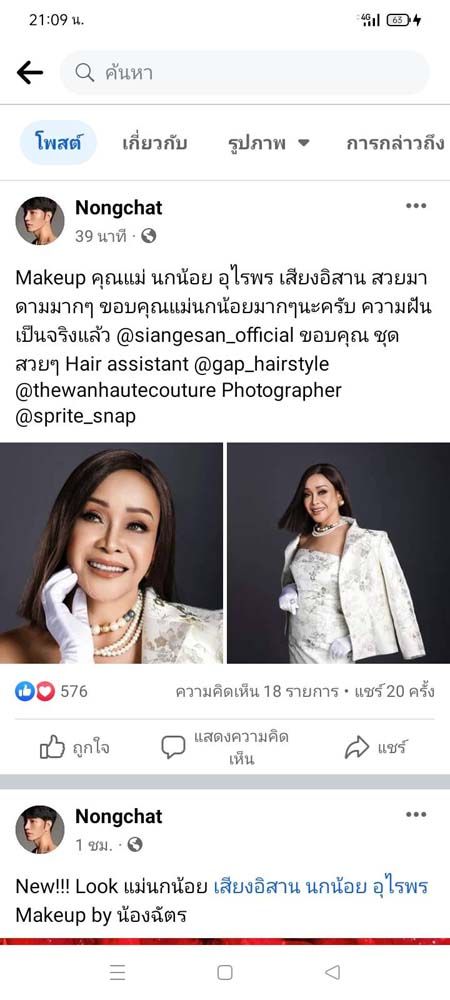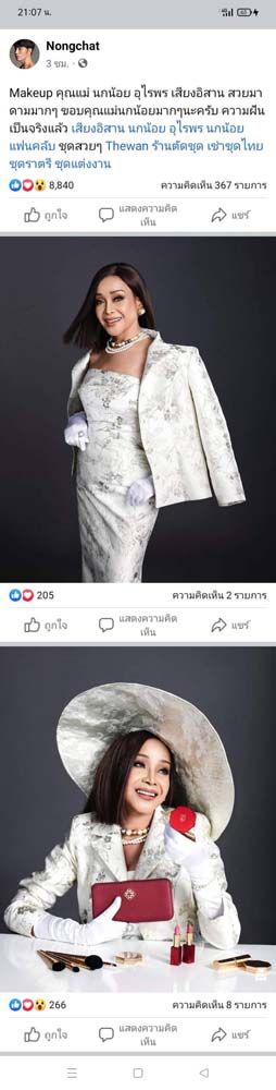 ด้าน “แม่นกน้อย” ก็ได้แชร์โพสต์ของ “น้องฉัตร” พร้อมข้อความระบุว่า “น้องฉัตรจัดหนักอีกแล้ว!!! Makeup คุณแม่ นกน้อย อุไรพร สวยมาดามมากๆ ค่ะ ชอบลุคนี้ ขอกำลังใจคนละ 1 แชร์นะคะ” ท่ามกลางเหล่าแฟนๆ ที่เข้ามาชื่นชมในความสวยของแม่นกน้อยกันอย่างมากมาย