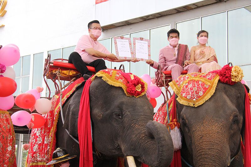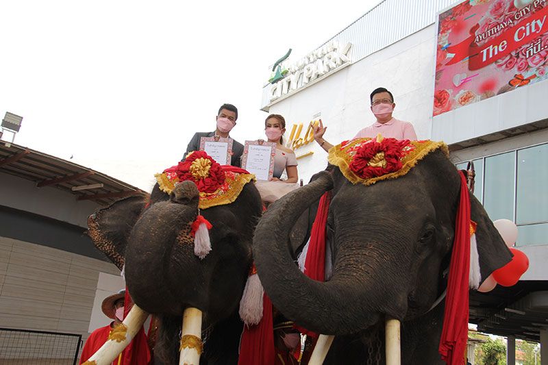 จังหวัดอยุธยาฯ อำเภอพระนครศรีอยุธยาร่วมกับ อยุธยาซิตี้พาร์ค วังช้างและวังช้างอยุธยาฯ จัดจดทะเบียนสมรสบนหลังช้าง ชื่นมื่นวันวาเลนไทน์
