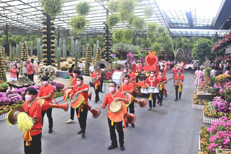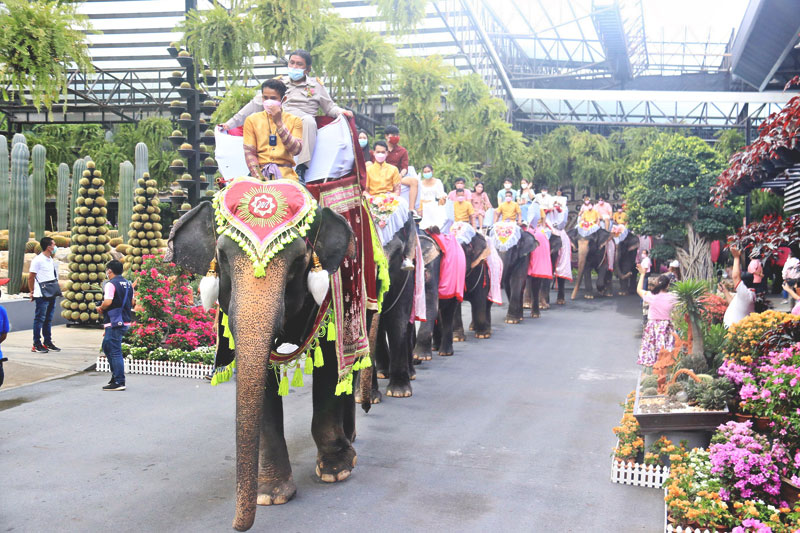 โดยภายในงานทางสวนนงนุชพัทยา ได้จัดขบวนแห่ขันหมากขึ้นอย่างยิ่งใหญ่ โดยนำคู่สมรส 9 คู่แรก นั่งบนหลังช้าง เพื่อร่วมขบวนแห่ขันหมาก เข้าสู่บริเวณจัดงาน ณ สวนลอยฟ้า สร้างความตื่นตาตื่นใจให้กับคู่บ่าวสาวที่มาร่วมงาน ซึ่งในปีนี้มีคู่รักมาร่วมจดทะเบียนคู่รักบนหลังช้าง กว่า 50 คู่ ทั้งนี้ คู่รักที่ร่วมกิจกรรมจะได้ขึ้นหลังช้างเพื่อรับทะเบียนสมรสทุกคู่ พร้อมรับของที่ระลึกไม้มงคล และในวันเดียวกันนี้ สวนนงนุชพัทยายังถือโอกาสดีเปิดตัวต้นมะกอกโอลีฟยักษ์ อายุมากกว่า 400 ปี จำนวน 5 ต้น เป็นสัญลักษณ์ของความรักที่มั่นคงและยั่งยืนในวันแห่งความรัก