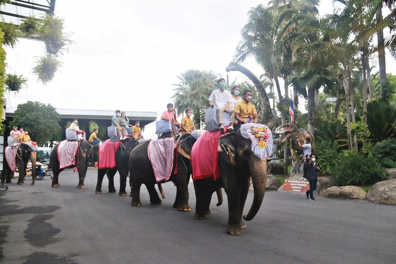 หวานชื่นรับวันวาเลนไทน์ 9 คู่รักจับมือขึ้นหลังช้าง จดทะเบียนสมรสที่สวนนงนุชพัทยา