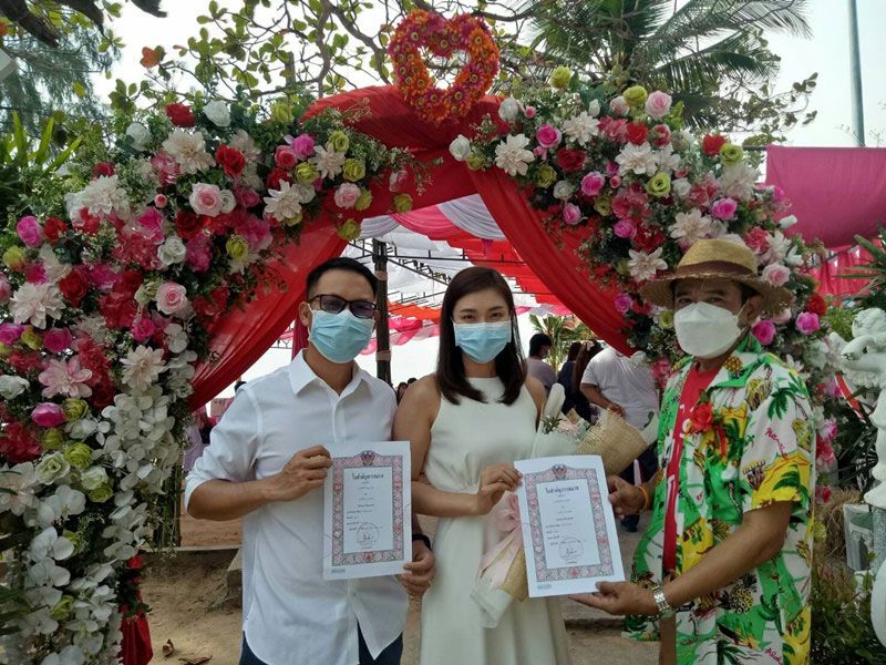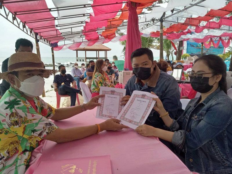 วาเลนไทน์อำเภอบ้านฉาง เมืองระยองคึกคัก! 50 คู่รักจูงมือจดทะเบียนริมชายหาดบ้านพลา เจ้าสาววัย 70 ปีเผยรู้จักเจ้าบ่าววัย 60 ปีตอนเปิดร้านคาราโอเกั ฝ่ายเจ้าป่าวมีเงินจ่ายค่าอาหารไม่พอ เลยเอาตัวเป็นประกันจนกลายเป็นความรักควงแขนมาจดทะเบียนหลังอยู่กินกันมากว่า 20 ปี
