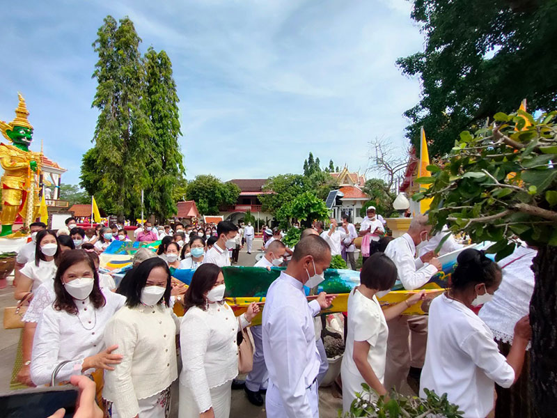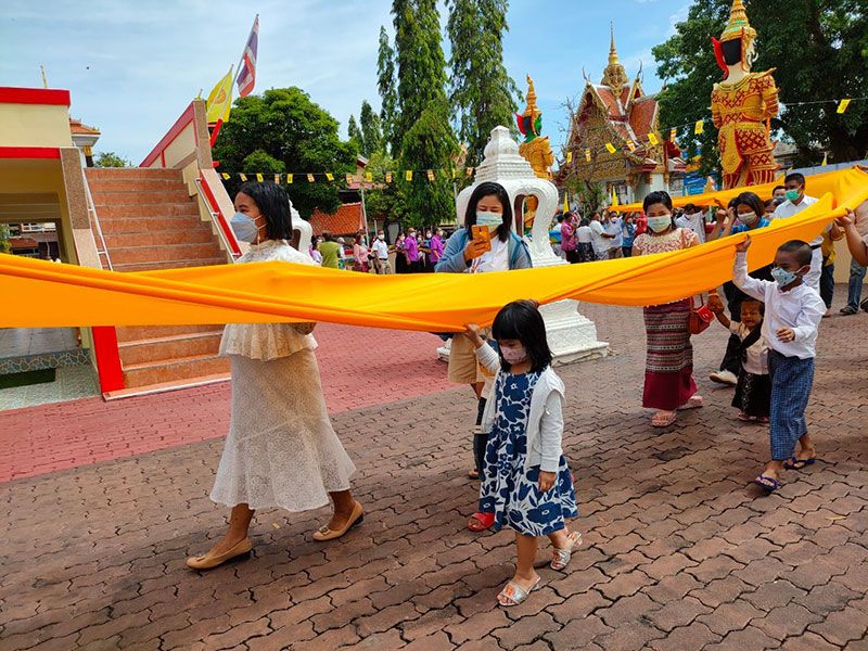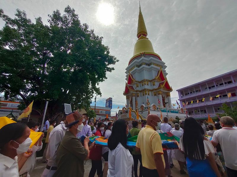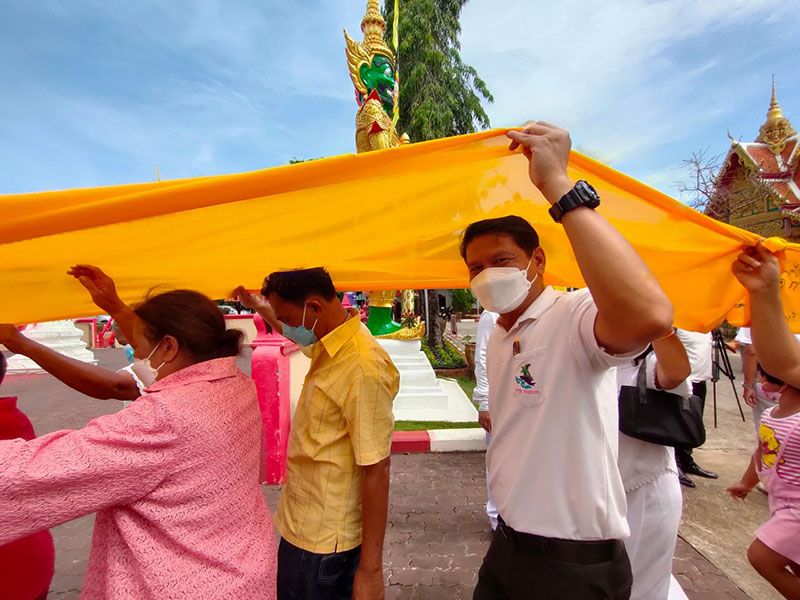 ชาวไทยพุทธและแรงงานเมียนมา จ.สตูล สืบสานประเพณีแห่ผ้าขึ้นห่มพระบรมธาตุเจดีย์ศรีเมืองใต้เนื่องในวันมาฆบูชา 2565