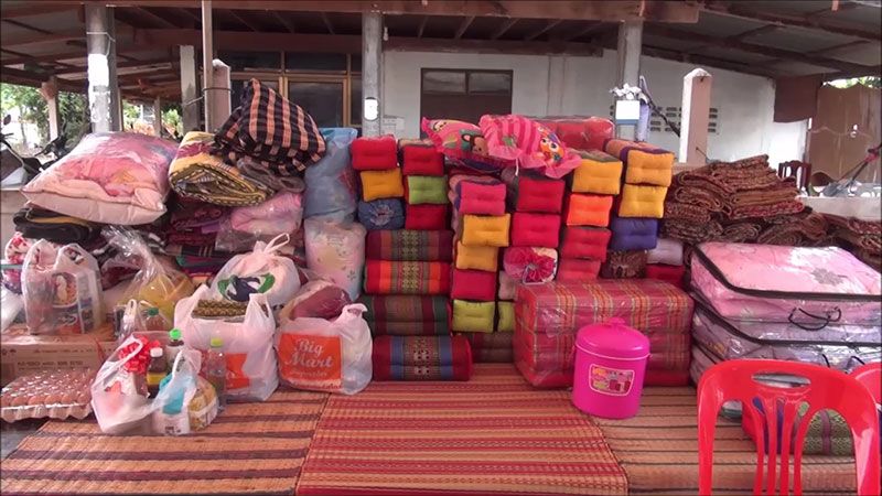 ต่อมาเมื่อเวลา 12.30 น. วันที่ 17 กุมภาพันธ์ 2565 ผู้สื่อข่าวได้เดินทางไปยังบ้านเลขที่ 108 ม.5 ต.อ้อมกอ อ.บ้านดุง จ.อุดรธานี ผู้นำชุมชนและชาวบ้านได้ช่วยกันกางเต้นท์รับบริจาคเงิน สิ่งของ และไว้เป็นที่พักชั่วคราวให้ครอบครัว คุณยายแดง กองศรีนนท์ อายุ 78 ปี โดยก่อนหน้านี้มีชาวบ้านในหมู่บ้านเดียวกันและหมู่บ้านใกล้เคียง รวมทั้งคณะครูในตัวเมือง อ.บ้านดุง ที่ทราบข่าว เดินทางมาบริจาคให้คุณยาย เช่น เงินสด 22,000 บาท หมอน ผ้าห่ม เครื่องอุปโภคบริโภคต่างๆ จำนวนมาก และเสื่อที่คุณยายชอบมากกว่า 100 ผืนเพื่อมอบไว้เป็นกำลังใจให้คุณยาย ส่วนหน่วยงานราชการจะมามอบสมทบและช่วยเหลืออีกครั้ง เบื้องต้นมูลค่าความเสียหาย ประมาณ 5 แสนบาท แต่เสื่อที่ถูกไฟไหม้วอดทั้งหมดประเมินค่าไม่ได้ เพราะมันมีคุณค่าทางจิตใจของคุณยายแดง