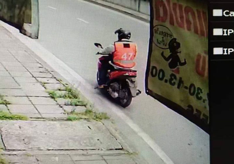 สักพักคนร้ายได้อุ้มถังแก๊สวิ่งออกจากหน้าร้านไปที่รถจักรยานยนต์ทันที น่าจะติดเครื่องรออยู่ ก็เลยตะโกนร้องว่ามีคนขโมย ขโมยถังแก๊ส ร้องให้ลูกสาวออกมาดู แต่ไม่ทันแล้ว เหตุการณ์ไวมาก คนร้ายการแต่งกายใส่เสื้อสีส้มเป็นแบบเสื้อวิน ขับจักรยานยนต์ ไม่ติดแผ่นป้ายทะเบียน สวมหมวกกันน็อค คลุมปิดหน้า ใส่เสื้อเบอร์ 47 ไม่รู้วินอะไร รูปร่างตัวใหญ่ หุ่นท้วม อายุประมาณ 40 ปี หลังจากที่เกิดเหตุขึ้นก็ไปดูกล้องวงจรปิด เห็นขับรถออกมาจากซอย ขับวนไปวนมา ขับย้อนศร แล้วมาจอดที่ร้านอุ้มถังแก็สใส่รถทันที โดยที่รถนั้นสตาร์ทเครื่องอยู่ขับรถมุ่งหน้าโค้งรังสิต โดยไม่ทราบทิศทาง