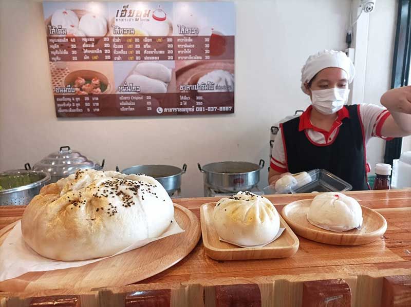 ผู้สื่อข่าวรายงานว่า เฮียซูมโด่งดังหลังคิดค้นไส้ซาลาเปาใหม่ โด่ไม่รู้ล้มและพญาช้างสาร ในห้วงเทศกาลแห่งความรักหรือวันวาเลนไทน์ที่ผ่านมา เรียกว่าไส้หมูลักหลับ นอกจากนี้ยังมีหมั่นโถว-ไส้ขาหมู ซาลาเปาไส้ เบคอนซีน หมูซีส หมูสับ ไส้ลาวาไข่เค็ม ส่วนไส้หวาน อาทิ ลาวามันม่วง ลาวาชาเชียวมัชฉะ และมีขนมจีบเนื้อแน่นๆอีก. 012