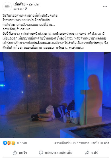 ล่าสุด เพจเฟซบุ๊ก “เส้นด้าย-Zendai” ได้แชร์ข้อมูลของผู้ป่วยรายหนึ่งที่ติดเชื้อโควิดแต่ต้องออกมานอนรอรับการรักษานอกที่อยู่อาศัย