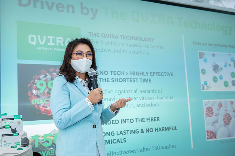 ที่ผ่านมามีบริษัทชั้นนำของไทยมาร่วมเป็นพันธมิตรกับเราเพื่อนำเส้นใยผ้าอัจฉริยะ QVIRA มาพัฒนาเป็นผลิตภัณฑ์เพื่อบุคลากรภายในแล้ว เช่น MQDCที่ได้ต่อยอดผลิตภัณฑ์จาก QVIRA นวัตกรรมเส้นใยยับยั้งเชื้อไวรัส และแบคทีเรีย เพื่อใช้ในสำนักงานขาย และโครงการที่อยู่อาศัยทุกโครงการรวมถึงสถาบันการเงิน อย่าง SCB และเซ็นทรัล ก็ได้ตกลงความร่วมมือกับเรา ที่จะใช้นวัตกรรมเทคโนโลยี QVIRA เพื่อผลิตหน้ากากผ้าให้กับบุคลากรของบริษัท ทั้งหมด เพราะบริษัทเหล่านี้ มีบุคลากรที่เป็น Frontline ที่ต้องประสานงาน และให้บริการกับลูกค้าค่อนข้างมาก