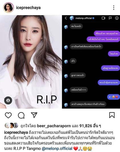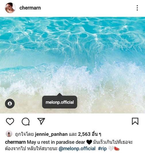 สร้างความโศกเศร้าไปยังวงการบันเทิงที่สูญเสียนักแสดงฝีมือดีและยังเป็นที่รักของเพื่อนๆในวงการเบันเทิง ล่าสุดบุคคลในวงการบันเทิงต่างร่วมกันโพสต์ภาพแตงโม และข้อความไว้อาลัยถึงแตงโม นิดา พัชระวีระพงษ์