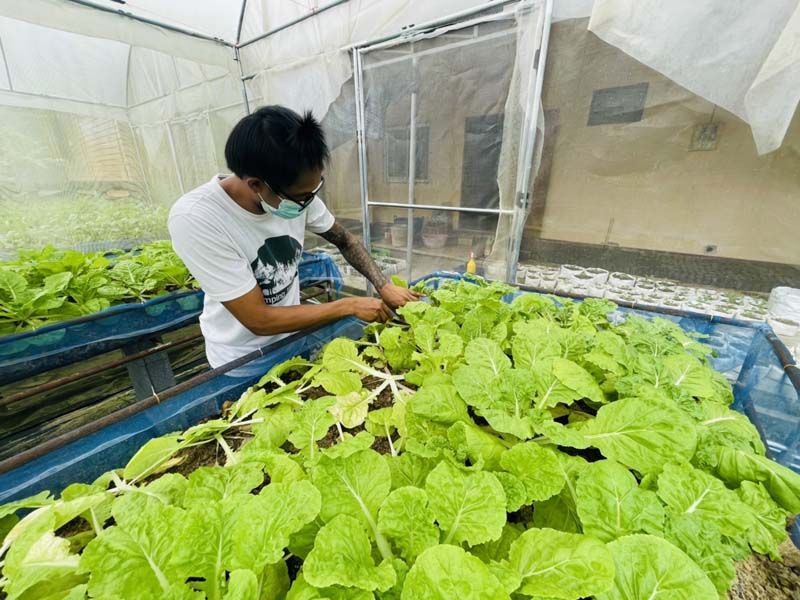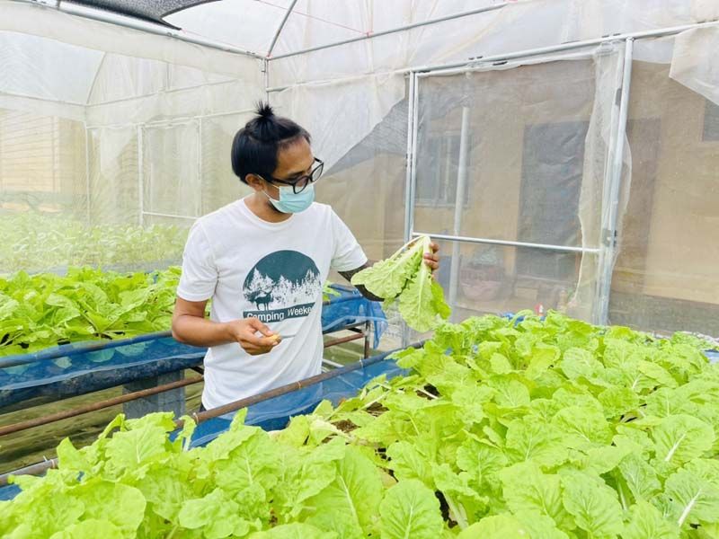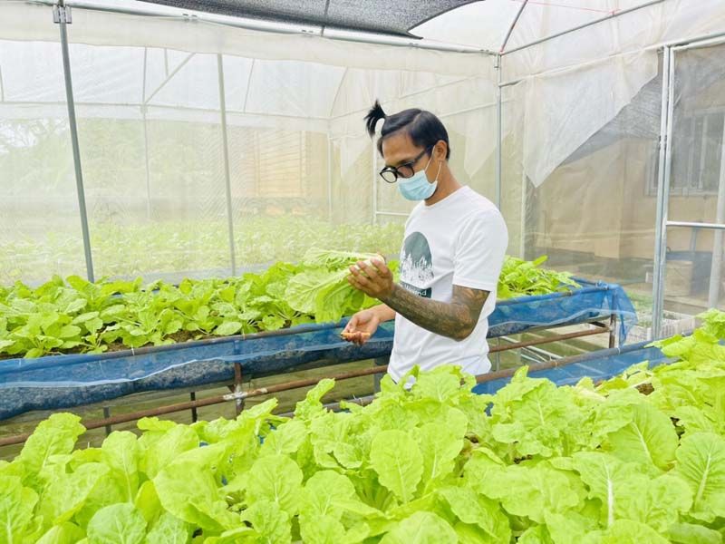 นายธรรมรัตน์ บอกว่า ตนมุ่งหน้ากลับบ้านเกิดเมื่อกลางปี 2564 และเริ่มมาปลูกผักช่วงปลายปี ควบคู่กับการเปิดร้านกาแฟเล็กๆ และเปิดบริการรับส่งพัสดุ ผักที่ปลูกทุกชนิดเป็นผักที่ปลอดภัยจากสารพิษ ไม่ใช้สารเคมีใดๆทั้งสิ้น ทำเองทุกขั้นตอน ทั้งการผสมดินปลูก ทำน้ำหมักชีวภาพ สารกำจัดศัตรูพืช ทั้งยังใช้วิธีการกางมุ้งให้ผักทุกแปลง เพื่อป้องกันแมลง