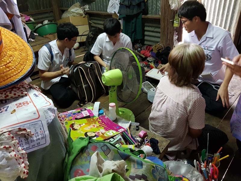คุณเพ็ญลักขณา : มีค่ะ มีน้องพยาบาลที่ดูแลด้านสุขภาพจิตมีแพทย์ มีนักศึกษาแพทย์ และเภสัชกร คือการออกไปพบคนไข้ตามบ้านนั้นเราเป็นทีมสหวิชาชีพ เราจะรักษาและดูแลเขาให้ดีโดยไม่ต้องให้เขาไปที่โรงพยาบาล ยกเว้นเคสที่หนักจริงๆ ก็ต้องนำตัวไปรักษาที่โรงพยาบาล การทำงานแบบนี้ต้องเน้นการสื่อสารกับผู้ป่วยและญาติให้เข้าใจกันเป็นอย่างดี ต้องอาศัยความร่วมมือจากคนอื่นๆในชุมชนด้วย เช่น สมมุติว่าคนไข้ใกล้จะเสียชีวิต เราต้องไปนิมนต์พระไปเทศน์ให้คนป่วยฟัง เพื่อให้เขาเกิดความสบายใจก่อนจะหมดลม หรือถ้าไปพบเด็กที่อดอยากมากๆ ร่างกายซูบผอมมากๆ เราก็จะขอให้เขาพาเราไปดูที่บ้านว่ากินอยู่กับใคร อยู่กันอย่างไร บางครั้งเราพบว่าเด็กอยู่ในบ้านที่ไม่มีคนดูแล อาหารการกินก็ไม่มีพอ เราก็ต้องไปกราบเรียนพระเจ้าอาวาสในชุมชนเพื่อขออาหารไปให้เด็กและคนในครอบครัวกิน พระท่านก็มีเมตตาท่านรับปากว่าจะให้เด็กวัดนำอาหารไปให้กินทุกวัน จากนั้นเราก็ไปคุยกับครู เพื่อดูว่าเขาขาดเรียนบ่อยไหม ครูบอกว่าเขาเขียนหนังสือสวยมาก แต่เดือนหนึ่งไปเรียนแค่ไม่เกิน 4-5 วัน เพราะเขาต้องดูแลน้องๆ อีกสองคน เราตามไปดูที่บ้านเขาแล้วพบว่าเขามีชุดนักเรียนชุดเดียว ความเป็นอยู่เลวร้ายมาก ขาดแคลนไปทุกสิ่งอย่าง เราเห็นว่าหากปล่อยไว้เช่นนี้เด็กผู้หญิงอาจถูกข่มขืนได้ ส่วนเด็กผู้ชายก็ถูกพ่อทำร้ายทุกวันตามเนื้อตัวมีแต่รอยและแผล เราพบว่าพ่อของเด็กเมาทุกวัน ทำร้ายลูกเป็นประจำ คุยกับพ่อเด็กก็ทราบว่าพ่อเด็กบอกไม่มีปัญญาเลี้ยงดูลูก จะเอาเด็กไปเลี้ยงต่อก็ยินดียกให้ เราจึงนำเด็กไปไว้ที่บ้านพักฉุกเฉิน เพื่อให้พ้นจากปัญหาเบื้องต้นก่อน
