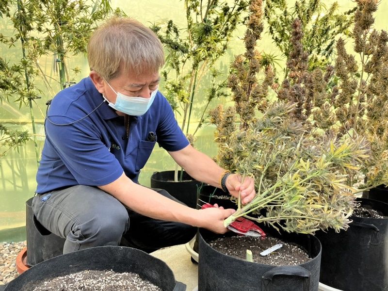 วันที่ 5 มี.ค.65 เมื่อเวลา 16.00 น. ที่ฟาร์มกัญชงโครงการ VSC HEMP ปลูกกัญชงตามกฎหมายภายใต้บริษัท วิสและบุตร (จำกัด) ที่อำเภอแม่ริม จังหวัดเชียงใหม่ นายเจริญ พิมพ์ขาล เกษตรจังหวัดเชียงใหม่ ร่วมกับนายมนตรี ฉายทองคำ CEO VSC HEMP, พ.ต.อ.สิทธา คำเลิศ ผกก.สภ.แม่ริม และนายสดุดี ขวัญชัย ผู้ดูแลโครงการ ได้ร่วมกันตัดดอก “กัญชง” ครั้งแรกเพื่อส่งมอบให้มหาวิทยาลัยนเรศวรวิจัยและศึกษาพัฒนาเป็นผลิตภัณฑ์และต่อยอดสายพันธุ์ใหม่ๆ ขึ้นมาเพื่อเป็นตัวเลือกให้กับเกษตรกรไทยในวันข้างหน้า หลังจากได้มีการปลูกมาตั้งแต่ต้นเดือนธันวาคม 2564 ที่ผ่านมา – 003