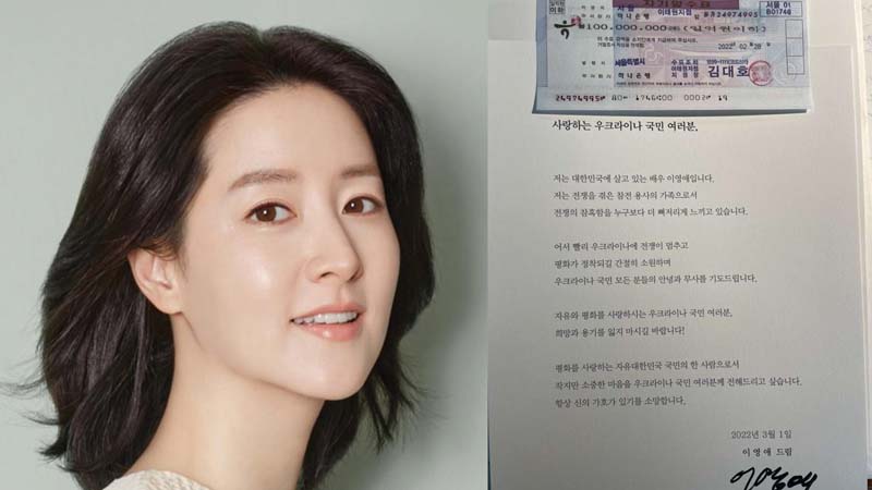 O ดมิโทร โปโนมาเรนโก เอกอัครราชทูตยูเครน ประจำเกาหลีใต้ เผยจดหมายพร้อมรูปเช็คจำนวนเงิน 100 ล้านวอน หรือประมาณ 2.7 ล้านบาท ที่ อี ยอง เอ ซึ่งแฟนซีรี่ส์นานาชาติรู้จักกันดีจากเรื่อง แดจังกึม มอบให้เหยื่อสงครามในยูเครน ที่กำลังถูกกองกำลังทหารรัสเซียโจมจีอยู่ในขณะนี้ นางเอกหน้าเด็ก วัย 51 ปี ระบุในจดหมายว่า เธอเองก็เกิดมาในครอบครัวทหารผ่านศึก จึงเข้าใจความน่ากลัวของสงครามอย่างลึกซึ้ง เธอขอให้สงครามที่ยูเครนยุติลงโดยเร็วและบังเกิดสันติภาพในเร็ววัน ขอภาวนาให้ชาวยูเครนทุกคนปลอดภัยและขอส่งหัวใจดวงน้อยๆ ของเธอไปยังชาวยูเครนผู้รักอิสระและสันติภาพทุกคนขอให้มีความกล้าหาญและอย่าหมดหวัง ขณะที่ท่านทูตซึ่งแชร์เรื่องราวดีๆ นี้ผ่านทวิตเตอร์ก็ย้ำว่าเงินจำนวนนี้จะถูกส่งไปช่วยเหลือเหยื่อสงครามครั้งนี้อย่างแน่นอน
