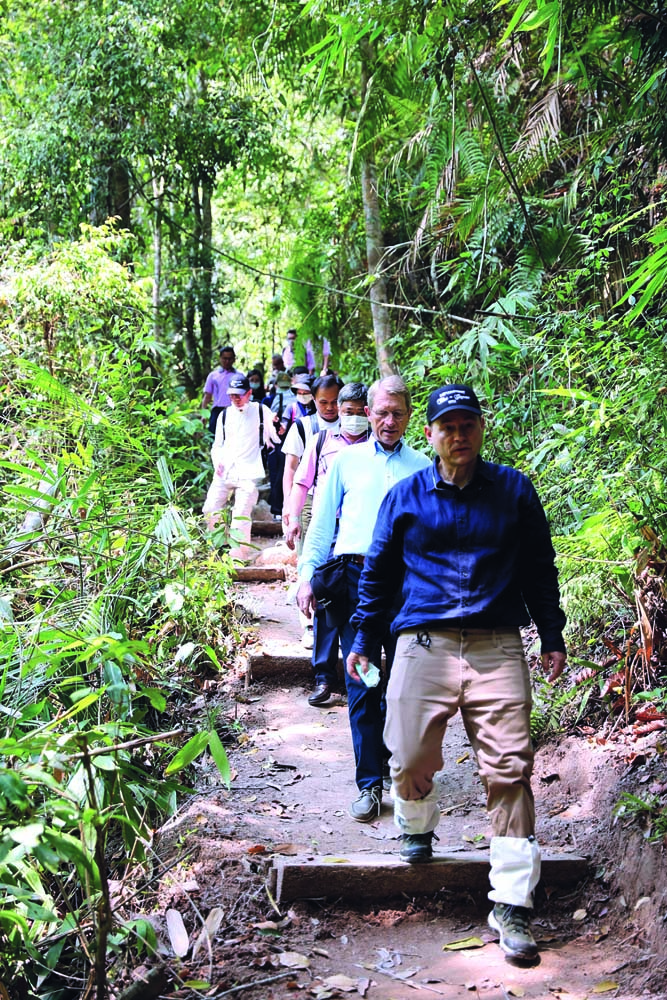วิกรม กรมดิษฐ์ และ ดร.ฮาราลด์ ลิงค์ พร้อมคณะ ระหว่างเดินเท้าศึกษาธรรมชาติ