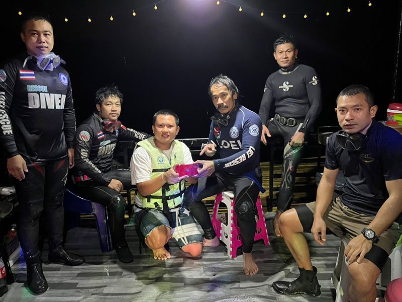 นายสมชาติ ชุ่มชื่น หัวหน้ากู้ภัย จุดมหาวิทยาลัยราชภัฏเลย เล่าว่า ตนพร้อมนักประดาน้ำกว่า 11 นาย ทำการเตรียมอุปกรณ์และงมหาโทรศัพท์อย่างไม่ลดความพยายาม บรรยากาศตอนนั้นก็ใกล้ค่ำแล้ว ใช้เวลาประมาณ 3 ชั่วโมง ก็สามารถนำโทรศัพท์มือถือ iPhone 13 ที่นักท่องเที่ยวทำตกขึ้นมาได้ในสภาพปกติ ซึ่งมือถือจมลงไปในความลึก 14 เมตร สร้างความปลื้มใจและประทับใจให้กับนักเท่องเที่ยวคนดังกล่าวเป็นอย่างมาก