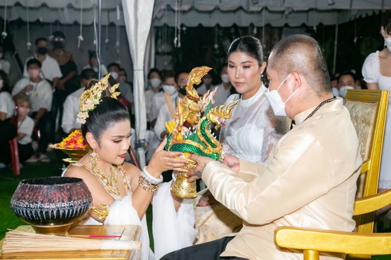 สำหรับบรรยากาศงานบุญเริ่มตั้งแต่เช้าตรู่ของวันที่ 2 มีนาคม 2565พิธีเปิดทรัพย์ เปิดบารมี สวดสืบชะตาตามแบบโบราณล้านนาโดยคณะสงฆ์ จากวัดเขาสามก้าน จังหวัดชุมพร ซึ่งมีพระอาจารย์อำนาจ อาทิตฺตวณฺโณ เป็นประธานสงฆ์นำสวด จากนั้นศิลปิน นักแสดง ธัญญ่า อาร์สยาม และ ครีมมี่ พลอยประภัส นำทีมร่วมรำอวยพร เพื่อแสดงมุทิตาจิตแห่งความกตัญญูและเสริมสิริมงคลให้กับชีวิต
