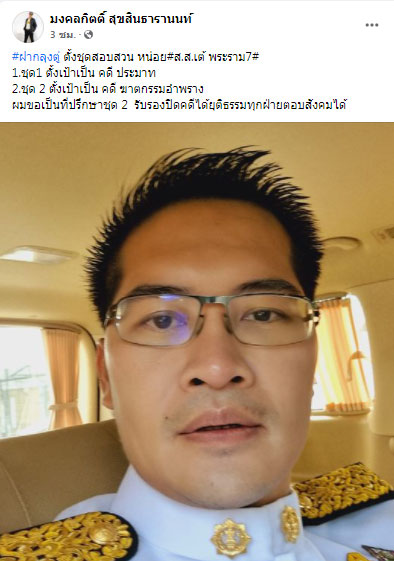 และโพสต์ครั้งที่สี่ ระบุข้อความฝากถึง พล.อ.ประยุทธ์ จันทร์โอชา นายกรัฐมนตรี ว่า “#ฝากลุงตู่ ตั้งชุดสอบสวน หน่อย#ส.ส.เต้ พระราม7# 1.ชุด1 ตั้งเป้าเป็น คดี ประมาท 2.ชุด 2 ตั้งเป้าเป็น คดี ฆาตกรรมอำพราง ผมขอเป็นที่ปรึกษาชุด 2 รับรองปิดคดีได้ยุติธรรมทุกฝ่ายตอบสังคมได้”