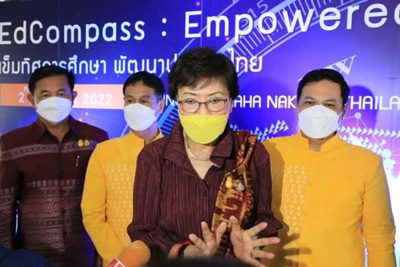 ดร.คุณหญิงกัลยา โสภณพนิช รัฐมนตรีช่วยว่าการกระทรวงศึกษาธิการ เป็นประธานการเสวนาวิชาการ เรื่อง “เข็มทิศการศึกษา พัฒนาประเทศไทย” โดยมี ดร.อรรถพล สังขวาสี เลขาธิการสภาการศึกษา, พลโทธารา พูนประชา ผู้อำนวยการศูนย์อำนวยการแพทย์พระมงกุฎเกล้า, คณะผู้บริหาร ข้าราชการและบุคลากรสำนักงานเลขาธิการสภาการศึกษา (สกศ.) เข้าร่วมการเสวนาวิชาการ โดยการจัดงานภายใต้การเว้นระยะห่างตามมาตรการป้องกันการแพร่ระบาดของโรคติดเชื้อไวรัสโคโรนา 2019 (COVID-19) และถ่ายทอดสดออนไลน์ผ่าน live Facebook และ Youtube : OEC News สภาการศึกษาเมื่อวันที่ 2 มีนาคม 2565 ที่พระที่นั่งเทวราชสภารมย์ วังพญาไทกรุงเทพฯ
