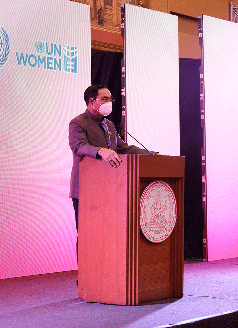 พลเอก ประยุทธ์ จันทร์โอชา นายกรัฐมนตรี กล่าวว่า ประเทศไทยให้ความสำคัญกับสตรี และได้จัดงานวันสตรีสากลมาอย่างต่อเนื่อง เพื่อเป็นการให้เกียรติและยกย่องสตรี รัฐบาลมุ่งหวังผลักดันให้พลังของสตรีมีส่วนสำคัญในการขับเคลื่อนเศรษฐกิจและสังคมของประเทศ โดยการผลักดันให้สตรีได้มีส่วนร่วม ส่งเสริมเศรษฐกิจชุมชน เพื่อเป็นการสร้างอาชีพให้สตรีมีรายได้ที่มั่นคง เป็นการยกระดับคุณภาพชีวิตของสตรีทั่วประเทศ ซึ่งการจัดงานวันสตรีสากล ปี 2565 ภายใต้แนวคิด ” เสริมพลังสตรี ร่วมตัดสินใจ ลดผลกระทบภัยพิบัติจากธรรมชาติและสิ่งแวดล้อม” เพื่อให้สตรีมีเสรีภาพ ร่วมแสดงความคิดเห็น ร่วมตัดสินได้อย่างเท่าเทียมในสังคมในประเด็นนี้ เพื่อให้ สามารถรับมือได้ในอนาคตต่อการเปลี่ยนแปลงของสภาพภูมิอากาศ นอกจากนี้ ยังเป็นการสร้างความเข้มแข็งให้กับสตรีในสังคมและประเทศชาติต่อไป