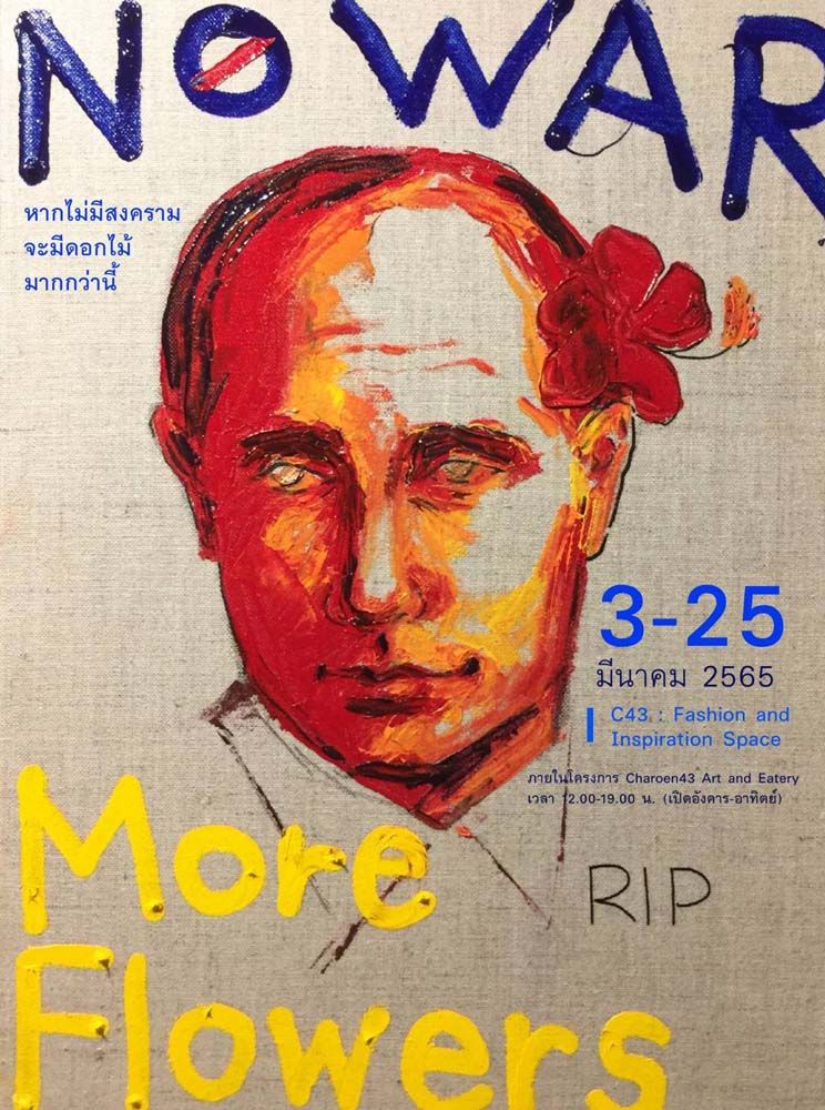 นิทรรศการ No War More Flowers หากไม่มีสงคราม จะมีดอกไม้มากกว่านี้ เกิดขึ้นจากความสะเทือนใจกับข่าวสงครามในยูเครน ผู้คนต้องอพยพจากถิ่นฐานบ้านเกิด การรบราฆ่าฟันในขณะที่อีกมุมหนึ่งของโลก ดอกไม้กำลังผลิบานรับฤดูร้อน นิทรรศการในครั้งนี้ศิลปินต้องการสะท้อนถึง การดิ้นรนของชีวิตท่ามกลางความฝัน ความหวัง และความสวยงามของดอกไม้ ที่ยังผลิบานผลัดเปลี่ยนกันทุกฤดูเพื่อรอวันที่มนุษย์พร้อมที่จะมองเห็นความสวยงามของชีวิตในโลกใบนี้