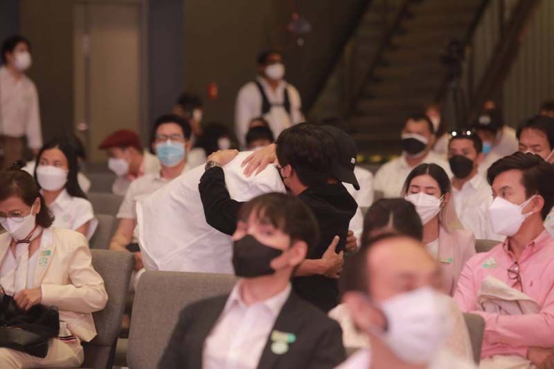 จากนั้น เวลา 19.43 น. ระหว่างพิธีไว้อาลัย “เบิร์ด แฟนหนุ่มของแตงโม นิดา เดินเข้าไปสวมกอด “โตโน่ ภาคิน” ให้กำลังใจกันและรำลึกถึงแตงโม เป็นเวลา 1นาที. -008