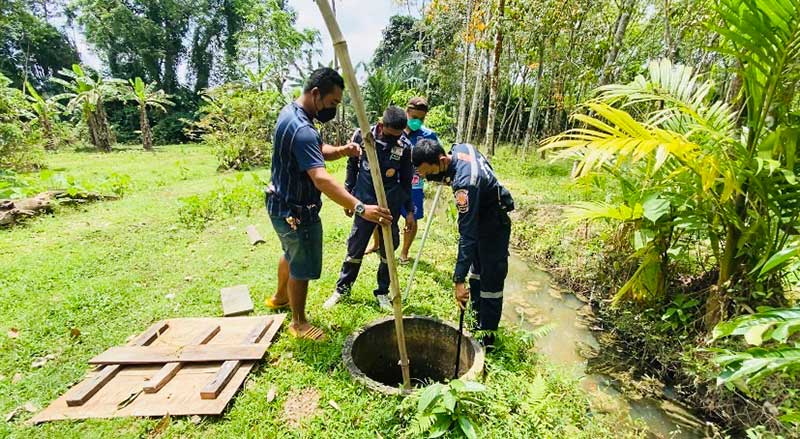 จากนั้นกู้ภัยจึงใช้บ่วงคล้องส่วนหัวงูก่อนนำขึ้นมาจากบ่อ พบว่างูเห่าตัวที่ 2 ก็มีขนาดและความยาวใกล้เคียงกันกับตัวแรก จึงนำไปใส่กระสอบอีกใบเพื่อนำไปปล่อยคืนสู่ธรรมชาติต่อไป