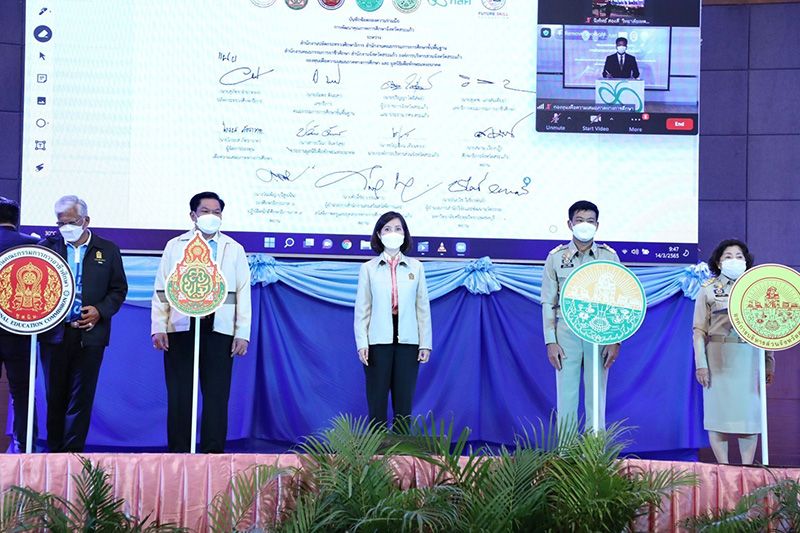 วันที่ 14 มีนาคม 2565 นางสาวตรีนุช เทียนทอง รัฐมนตรีว่าการกระทรวงศึกษาธิการ (รมว.ศธ.) เป็นประธานในพิธีลงนามบันทึกข้อตกลงความร่วมมือ (MOU) การพัฒนาคุณภาพการศึกษาจังหวัดสระแก้ว ระหว่าง สำนักงานปลัดกระทรวงศึกษาธิการ สำนักงานคณะกรรมการการศึกษาขั้นพื้นฐาน สำนักงานคณะกรรมการการอาชีวศึกษา สำนักงานจังหวัดสระแก้ว กองทุนเพื่อความเสมอภาคทางการศึกษา และมูลนิธิเพื่อทักษะแห่งอนาคต โดยมี นายปริญญา โพธิสัตย์ ผู้ว่าราชการจังหวัดสระแก้ว นายสุทิน แก้วพนา รองปลัดกระทรวงศึกษาธิการ นายสุทธิชัย จรูญเนตร ที่ปรึกษา รมว.ศธ. นายชัยพฤกษ์ เสรีรักษ์ ที่ปรึกษา รมว.ศธ. น.ส.อรพินทร์ เพชรทัต เลขานุการ รมว.ศธ. นายอัมพร พินะสา เลขาธิการคณะกรรมการการศึกษาขั้นพื้นฐาน นายสุเทพ แก่งสันเทียะ เลขาธิการคณะกรรมการการอาชีวศึกษา ผู้แทนกองทุนเพื่อความเสมอภาคทางการศึกษา ผู้แทนมูลนิธิเพื่อทักษะแห่งอนาคต และหน่วยงานที่เกี่ยวข้อง เข้าร่วมในพิธี ณ ห้องประชุมชั้น 1 องค์การบริหารส่วนจังหวัดสระแก้ว จ.สระแก้ว