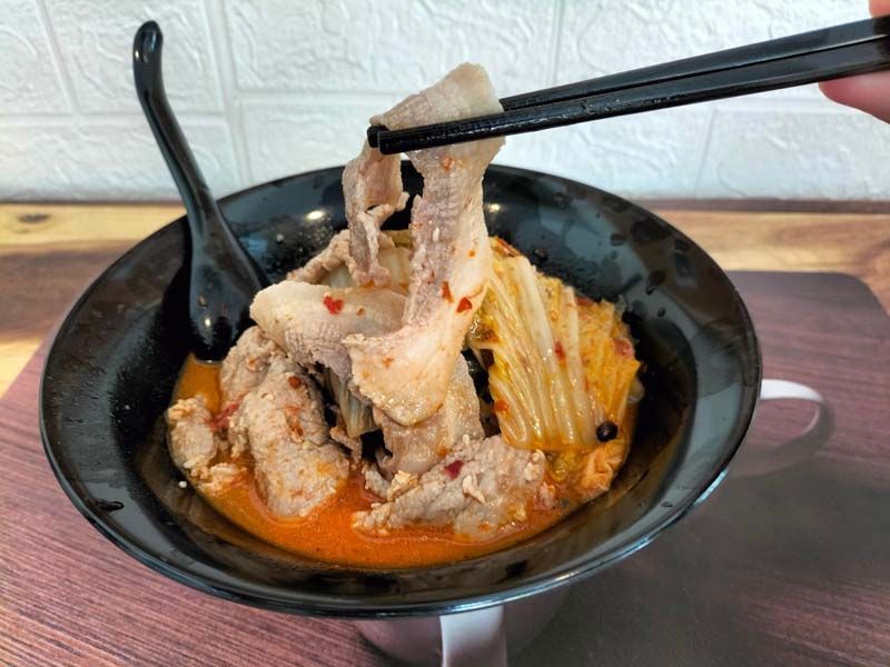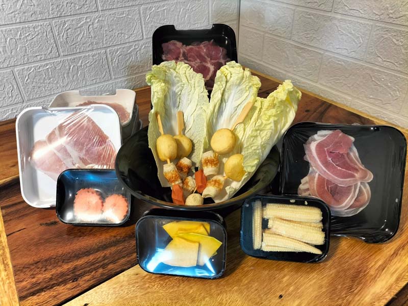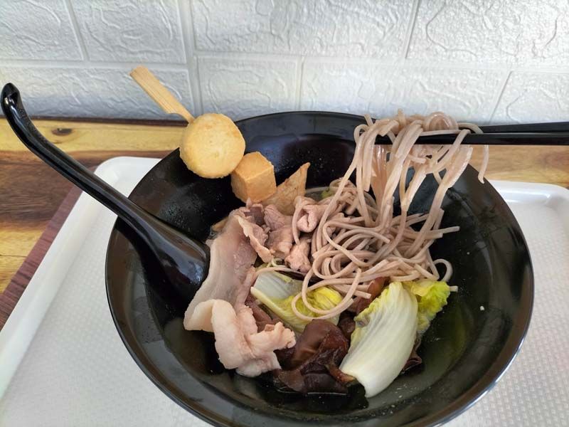 ลูกค้าที่เข้ามาเริ่มต้นก็เลือก วัตถุดิบที่ต้องการด้วยตนเอง ประเภทเนื้อหมูก็จะเป็นสามชั้นสไลด์ สันนอก สันใน สไลด์ ถาดละ 20 บาท ไข่ฟองละ 6 บาท ปลาดอลลี่ เต้าหู้ไข่ 10 บาท โอเด้ง 12 บาท ส่วนเมนูผัก มีให้เลือกทั้งผักกาดขาว เห็ดเข็มทอง เห็ดออริจิน เห็ดหูหนู ข้าวโพด มันฝรั่ง แครอท เพียง 5 บาท และเลือกเส้นมีทั้งเส้น อูด้ง วุ้นเส้น เส้นบุก ต๊อกบ๊อคกี ราคา 5-10 บาท และน้ำซุปราคาเพียง 5 บาทต่อถ้วย เมื่อเลือกวัตถุดิบได้แล้วทางร้านก็จะปรุงให้แบบชามต่อชาม มั่นใจเรื่องความเข้มข้นของน้ำซุปได้เลยว่าเข้มข้นและรสชาติไม่เพี้ยนแน่นอน