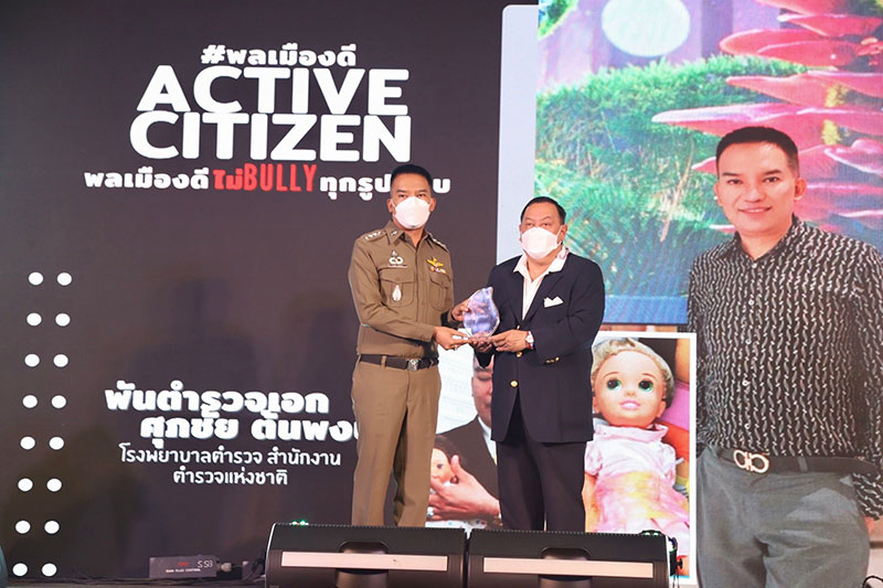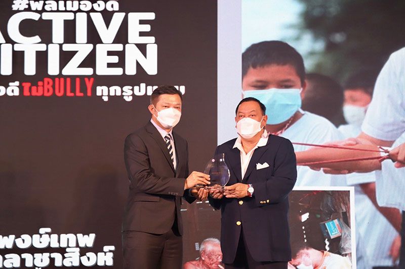 นายจุติ กล่าวต่อไปว่า การจัดกิจกรรมในวันนี้นับเป็นเรื่องดีดีของประเทศไทยที่ภาคีเครือข่ายทุกภาคส่วนให้ความสำคัญในการป้องกันและแก้ไขปัญหาความรุนแรง ทั้งนี้ ขอขอบคุณผู้สนับสนุนและขอมอบโล่รางวัลให้กับทุกท่านที่มีส่วนเกี่ยวข้องในการทำกิจกรรมดีดีครั้งนี้ ได้แก่ 1. คุณกานดา วัฒนายิ่งสมสุข ผู้จัดการฝ่ายสื่อสารองค์กร ผู้แทนบริษัท วิริยะประกันภัยจำกัด (มหาชน) 2. นายพิชัย จิราธิวัฒน์ กรรมการบริหารกลุ่มเซ็นทรัล 3. บริษัท ยูนิค เอ็นจิเนียริ่ง แอนด์ คอนสตรัคชั่น จำกัด (มหาชน) 4. พ.ต.อ.ศุภชัย ต้นพงษ์ พยาบาล (สบ 4) กลุ่มงานพยาบาล โรงพยาบาลตำรวจ 5. นายพงษ์เทพ มาลาชาสิงห์ ผู้บริหารบ้านวังน้ำเขียวลอดจ์ 6. นายกริช อิทธิโชติกร ผู้ประพันธ์บทเพลง “ปล่อยผ่าน (Move on Bully)” และ 7. พ.ต.อ.หญิง ศิริกุล ศรีสง่า พยาบาล (สบ5) กลุ่มงานพยาบาล โรงพยาบาลตำรวจ