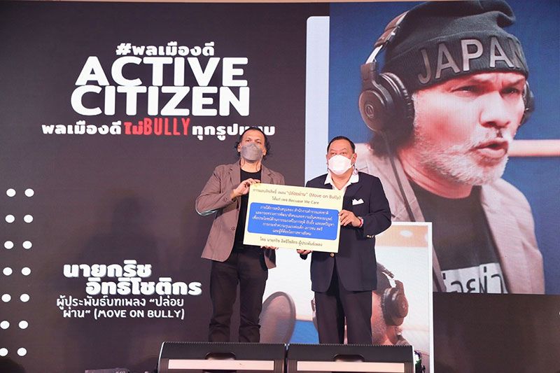 นายจุติ กล่าวว่า ปัจจุบัน ปัญหาความรุนแรงในสังคมไทยเกิดขึ้นหลากหลายรูปแบบ รวมทั้งการแสดงออกทางพฤติกรรมหรือการใช้คำพูดที่เป็นการดูหมิ่น และเหยียดหยามผู้อื่น หรือที่เรียกว่า “การบูลลี่ (Bully)” นับเป็นความรุนแรงอีกรูปแบบหนึ่ง ซึ่งสร้างความอับอายให้ผู้ถูกกระทำ ทำให้รู้สึกถึงการไม่เป็นที่ยอมรับของสังคม เป็นจุดเริ่มต้นของการนำไปสู่ปัญหาทางสังคมต่างๆ เราทุกคนจึงจำเป็นต้องเร่งป้องกันและแก้ไขโดยเร็วที่สุด ทั้งนี้ รัฐบาล โดยกระทรวง พม. ได้ขับเคลื่อนนโยบายเสริมสร้างให้คนรุ่นใหม่เป็น “Active Citizen Leadership” หรือที่เรียกว่า “ผู้นำพลเมืองดี” ที่ให้ความสำคัญในการพัฒนาทุนมนุษย์ โดยเฉพาะเด็กและเยาวชนคนรุ่นใหม่ ให้เข้ามามีส่วนร่วมในการทำกิจกรรมจิตอาสาช่วยเหลือสังคม ด้วยการนำทักษะการสื่อสารเชิงบวกที่สร้างกำลังใจ การรู้จักหน้าที่ของตน ให้เกียรติผู้อื่น ไม่บูลลี่ โดยในวันนี้ กระทรวง พม. โดยกรมพัฒนาสังคมและสวัสดิการ (พส.) ร่วมกับเพจ Because We Care และภาคีเครือข่าย จัดกิจกรรม “พลเมืองดี ไม่ bully ทุกรูปแบบ” พร้อมเปิดตัวเพลง “ปล่อยผ่าน (Move on Bully)” อย่างเป็นทางการ ซึ่งมีเนื้อหาในการให้กำลังใจ ให้กับผู้ที่ถูก“Bully”